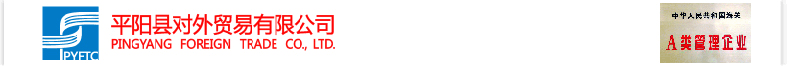 PINGYANG FOREIGN TRADE CO.,LTD. IS LOCATED IN PINGYANG,ZHEJIANG,ON THE COAST OF EAST CHINA SEA,THEREARE THE NATIONAL TOURIST SCENIC SPOTSOUTH YANDANG MOUNTAIN AND PRAISED AS “THEORIENTAL HAWAII” NANJI ISLANDS.THE PLEASANT CLIMATE, RICH PRODUCTS, RENOWNED AT HOME AND ABROAD OF THE “SHUITOU LEATHER BASE”,“XIAOJIANG WOVEN PLASTIC CITY”, “AOJIANG MACHINERY CITY”IS ALL LOCATED IN PINGYANG.WE HAVE MORE THAN FORTY YEARS HISTORY OF PROFESSIONAL FOREIGN TRADE IN PINGYANG.WE MAINLY AGENT THE IMPORT AND EXPORT OF PIG LEATHER, PET SUPPLIES, LEATHER CLOTHING, GLASSES, PLASTIC WOVEN BAG, PLASTIC MACHINERY, CONSTRUCTION MACHINERY, WIRELESS VARIABLE SPEED MOTORS, AUTO PARTS, AQUATIC PRODUCTS AND SO ON SIX BIG CLASSES OF MORE THAN FORTY KINDS OF GOODS, AND TO UNDERTAKE THE “THREE-PLUS-ONE” TRADING MIX BUSINESS.WE ARE WILLING TO WORK ON THE BASIS OF EQUALITY AND MUTUAL BENEFIT, STICK TO THE PRINCIPLE OF “OBSERVE CONTRACT, KEEP PROMISE”,WITH THE REST OF THE WORLD, PEOPLE IN THE REGIONAL CONNECTION COOPERATION,COMMON DEVELOPMENT.